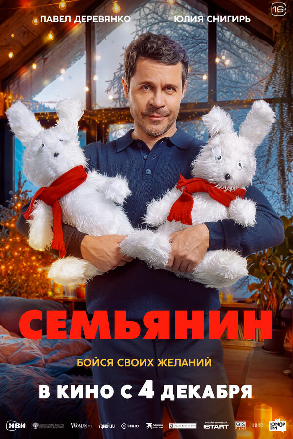 Кинокомпании «Атмосфера кино» и Yellow, Black and White с гордостью представляют официальный постер к долгожданной новогодней комедии «Семьянин», премьера которой состоится 4 декабря этого года. Этот фильм обещает стать настоящим хитом праздничного сезона, захватив зрителей своей уникальной магической историей, которая способна в одно мгновение изменить жизнь даже самого убежденного холостяка.
